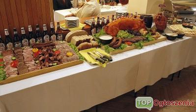 Stół wiejski:Prosie pieczone, szynka z kością, boczek, kiełbasa wiejska, salceson,smalec wiejski